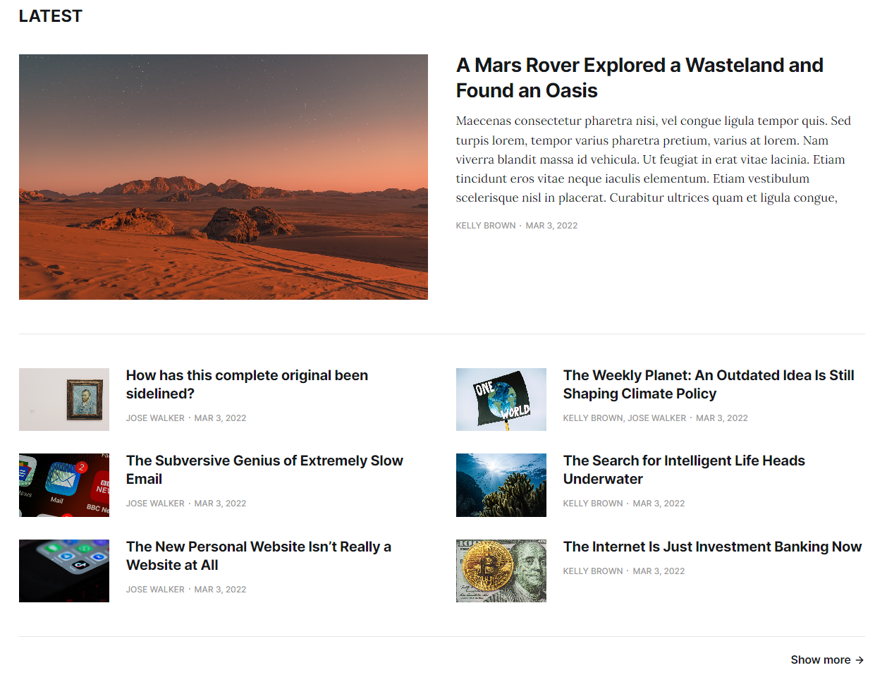 后面是纯文字文章标题3列显示: