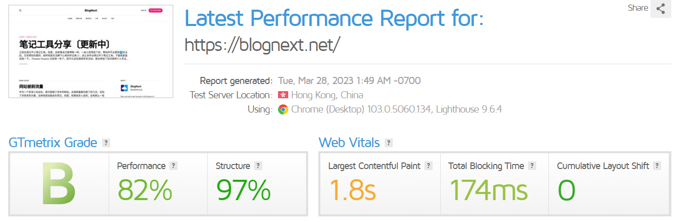 换个主题,立马变样,下面是换成Ruby主题后的成绩,立马变成B,但是网站也是3秒加载完成,你说这0.5秒,有那么大的差距吗?