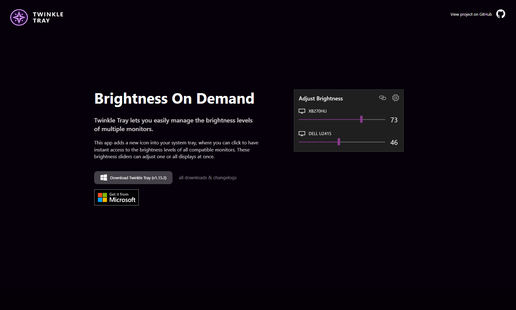 Twinkle Tray adds a brightness slider to Window, letting you easily manage monitor backlight levels from the system tray.