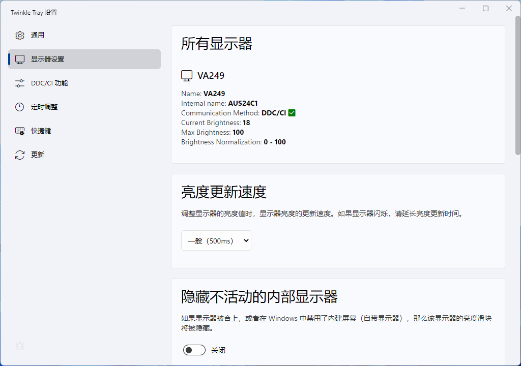 设置界面也有非常多的功能,还可以通过软件控制显示器的硬件参数(有风险还未测试)。